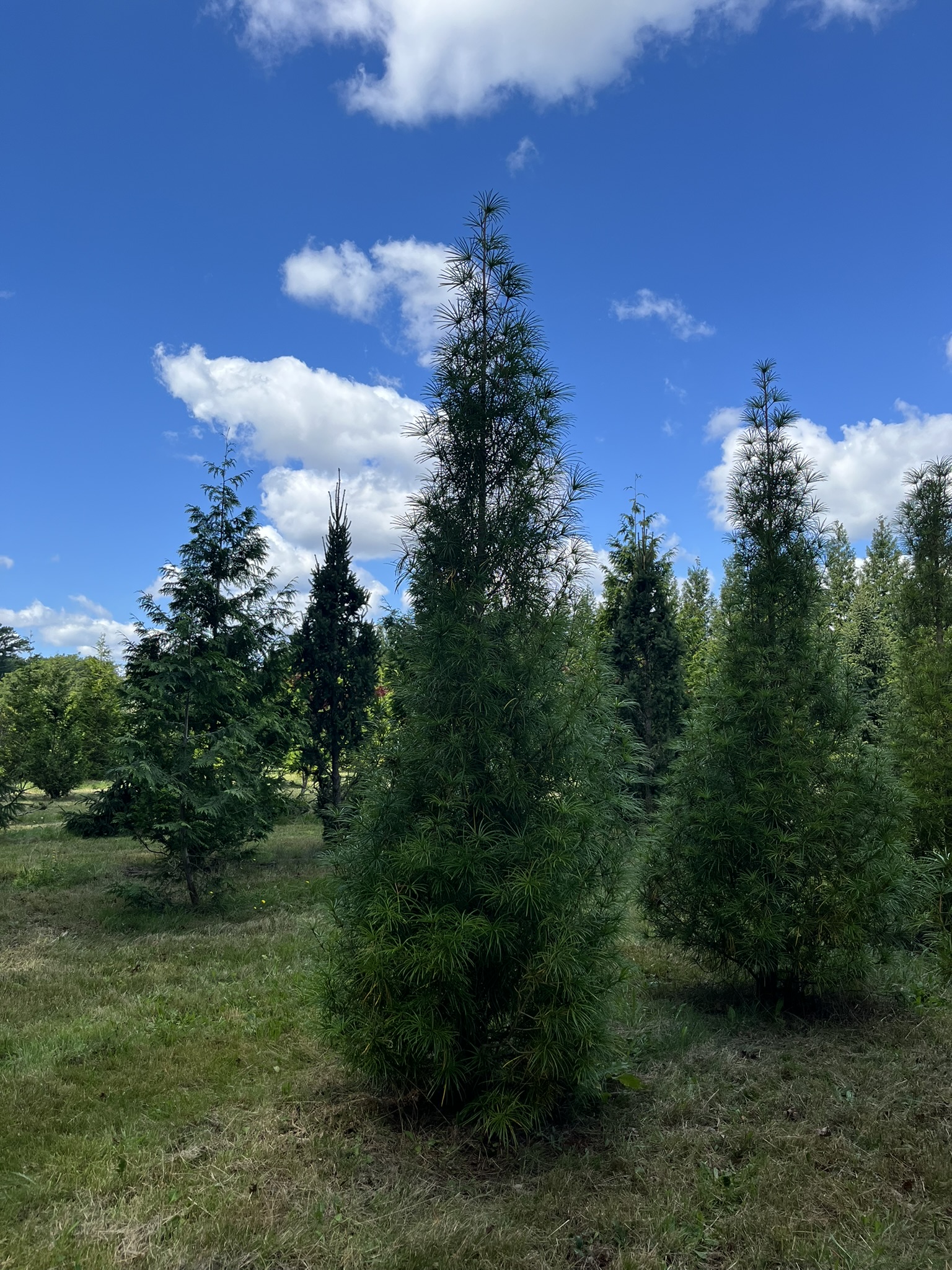 Massachusetts grown specimen evergreens including Umbrella and Swiss Stone Pine, Thuja Plicata Atrovirens and Cryptomeria. Unsurpassed quality!