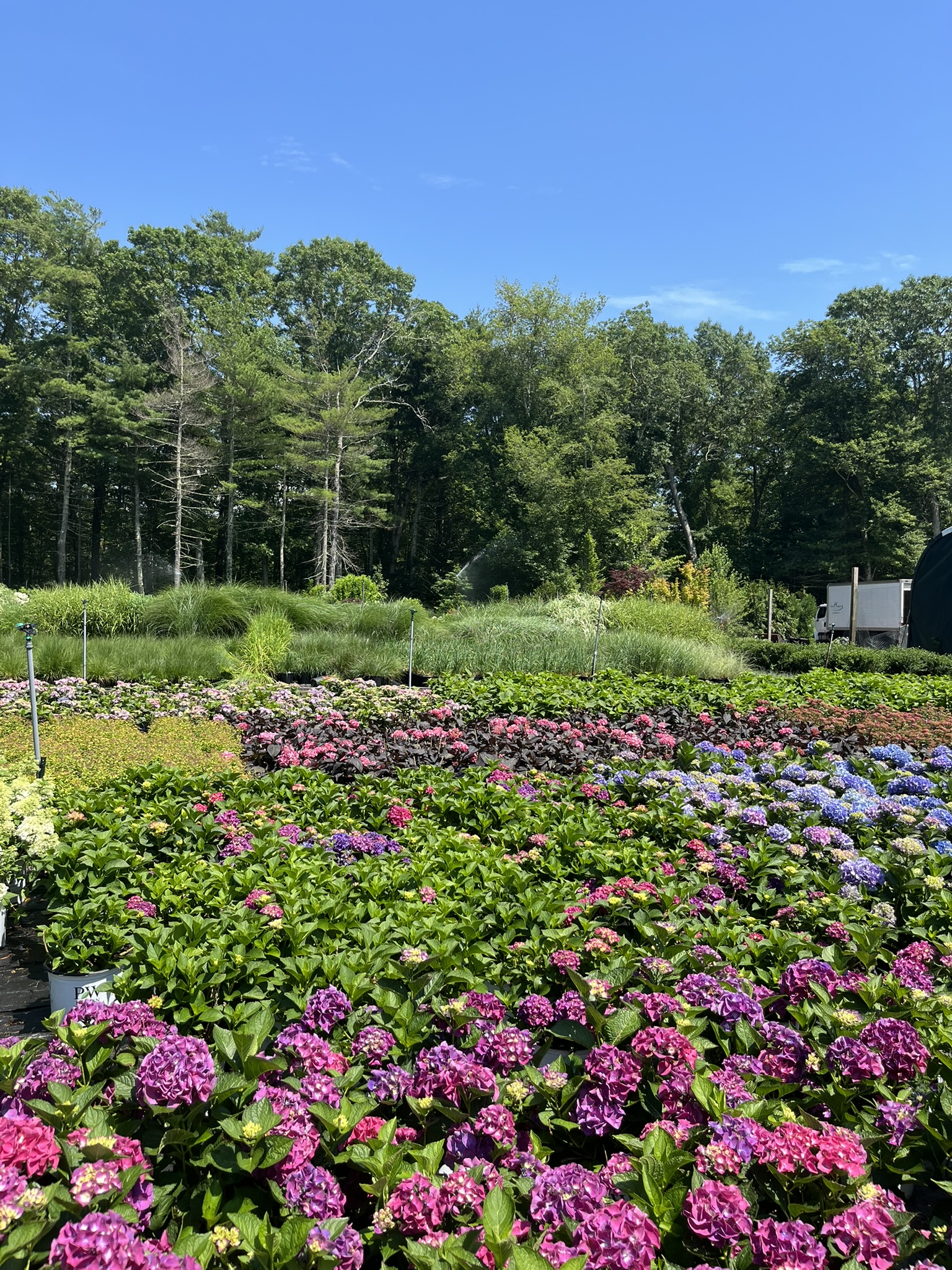 Container grown Hydrangea #3, #5, #7 gallon. Massachusetts grown- low minimums and frequent deliveries. Excellent variety selection and value, some unusual varieties. One and three gallon grasses