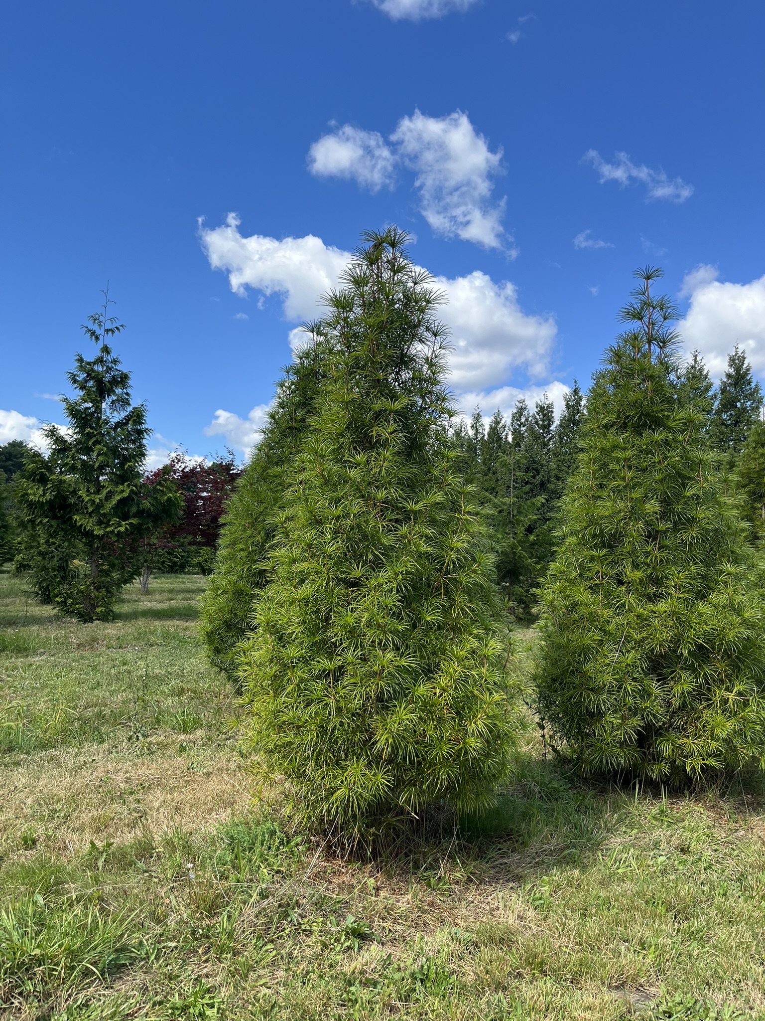 Massachusetts grown specimen evergreens including Umbrella and Swiss Stone Pine, Thuja Plicata Atrovirens and Cryptomeria. Unsurpassed quality!
